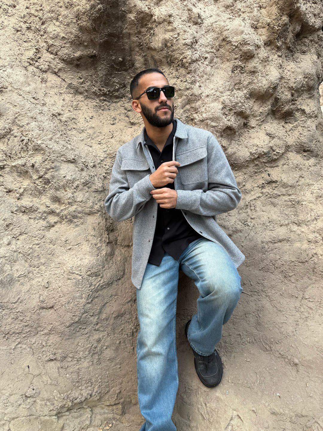 built for sharp comfort and everyday confidence. Crafted from premium wool-touch blended fabric with structure and warmth, it blurs the line between a lightweight jacket and a clean-cut blazer. Featuring a tailored silhouette with front flap pockets and snap-button closure, it’s made to layer easily over a tee or shirt — smart enough for nights out, effortless enough for casual days. This is your SO² signature.